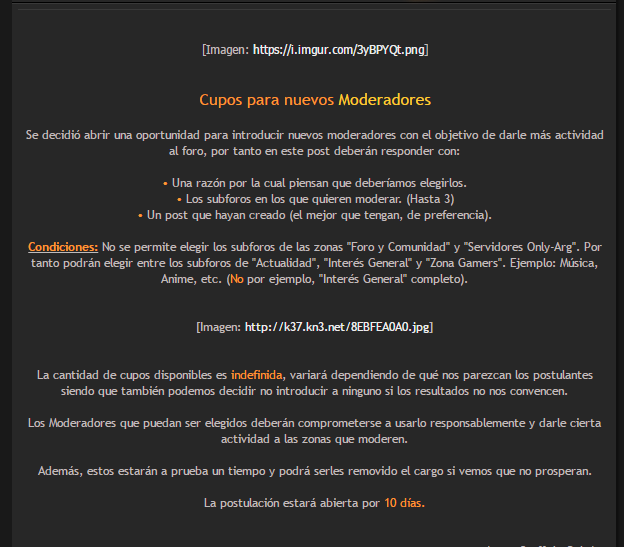 Issue description<b>Chrome Version : <Copy from: 'about:version'></b> URLs (if applicable) : www.onlyarg.com Other browsers tested: Mozilla Firefox Add OK or FAIL, along with the version, after other browsers where you have tested this issue: Safari: Firefox: IE: What steps will reproduce the problem? (1)Loading the page (2)Just watching a post, when there is a picture in it, I can't see it, I only see it's link. (3) What is the expected result? To see the picture instead of the link What happens instead? I see the link of the picture, like this "[img=www.example.example]" instead of the picture Please provide any additional information below. Attach a screenshot if possible. https://i.gyazo.com/7b85ff3dc04eb0dbfcdaa4f2a00fc354.png